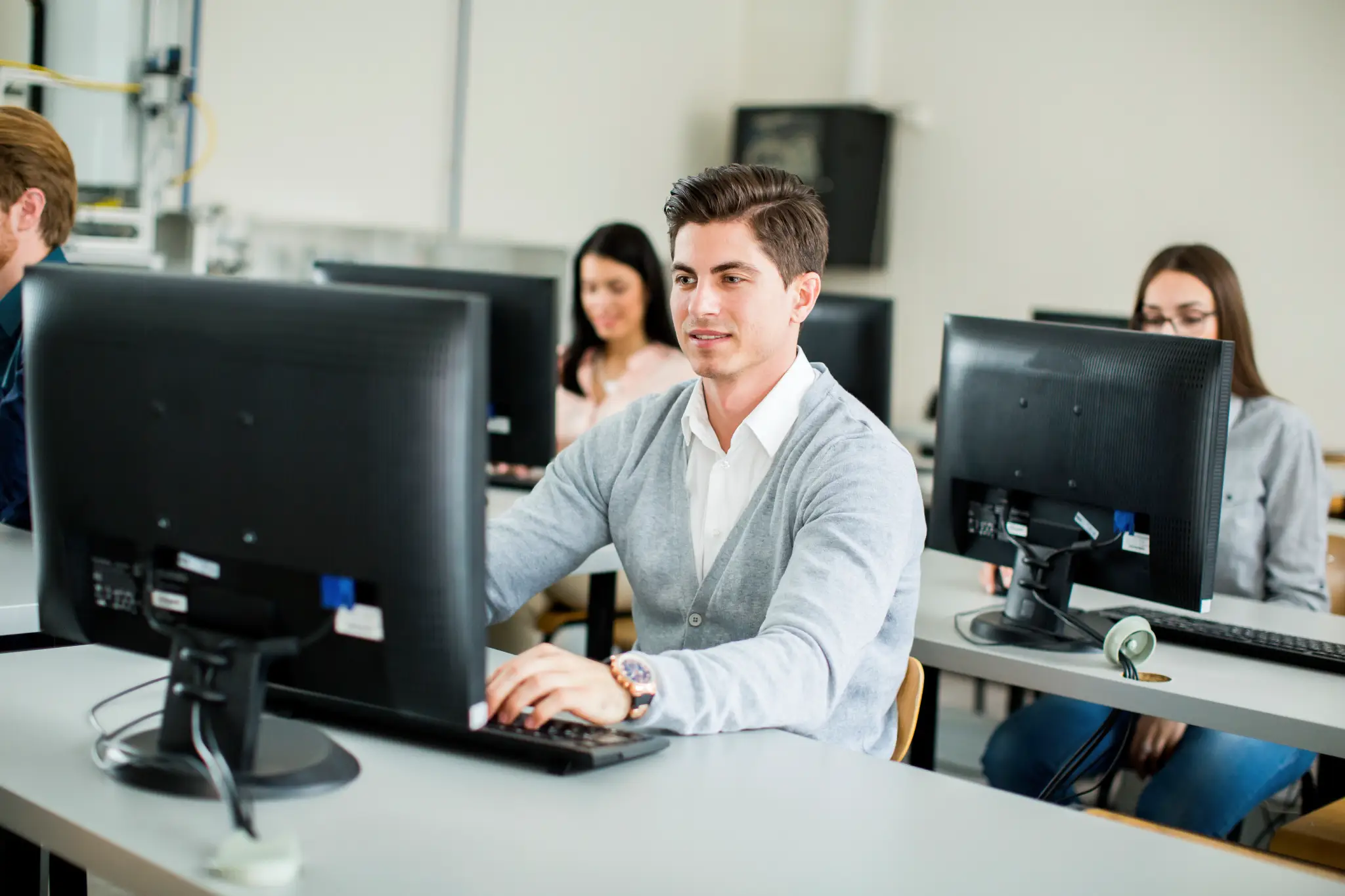 Students learn core IT skills including software development, database management, cybersecurity, and network administration. The